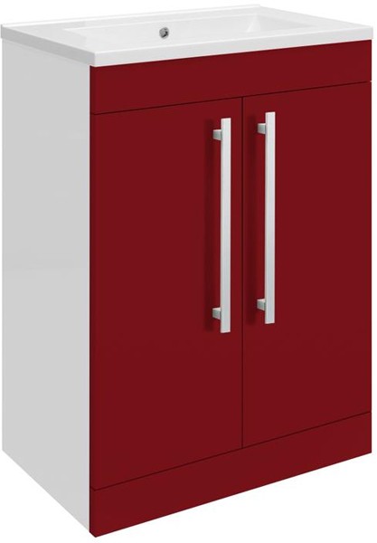 Design vanity unit in red with doors and ceramic basin (option 1).