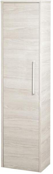 350mm Tall wall hung cupboard unit in white sawn oak with single doors, chrome handle.