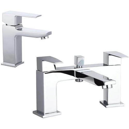 Hudson Reed Camber Designer mono basin and bath shower mixer tap in chrome with kit.