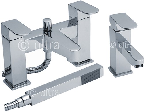 Basin mixer and bath shower mixer tap set in chrome with free shower kit.