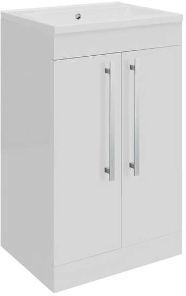 Design 500 Compact vanity unit in white with doors and ceramic basin.