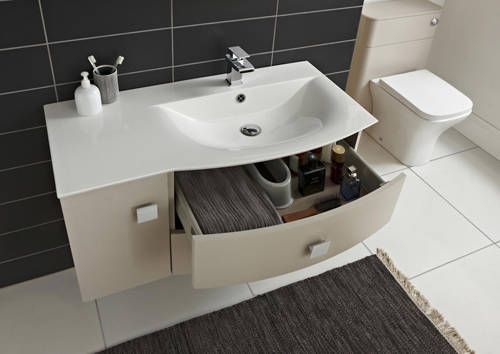 Hudson Reed Sarenna wall mounted vanity unit in cashmere finish with basin (right handed).