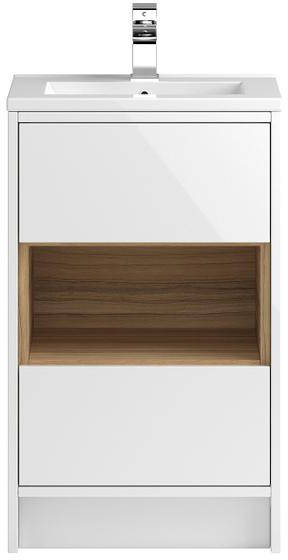 Hudson Reed Coast floor standing vanity unit in gloss white finish with ceramic basin (type 2).