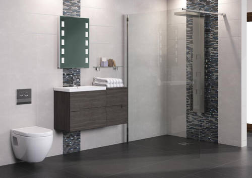 Hudson Reed Urban wall mounted vanity unit in avola grey woodgrain finish with ceramic basin (type 1).