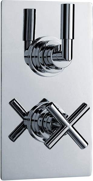 Twin concealed thermostatic shower valve in chrome.