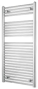 Flat heated towel rail in chrome. 600x1150mm. 2315 BTU. Suitable for use with 400w or 600w heating element to provide heat when your central heating is turned off. Can also be connection to a hot water central heating system.
