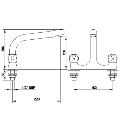 Sink Mixer with traditional mechanical valves and rubber washers (not ceramic valves).