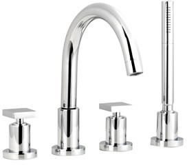 4 Tap hole deck mounted bath shower mixer with small swivel spout.