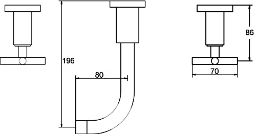 X head 3 Tap hole wall mounted bath filler with small spout.