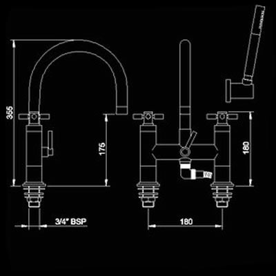 Cross head Bath Shower Mixer with Swivel Spout and Shower Kit.