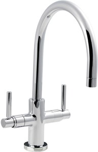 Kitchen tap in chrome with lever handles and large swivel spout.