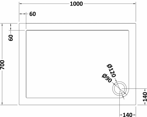 Low profile shower tray. Size 1000x700x40mm.