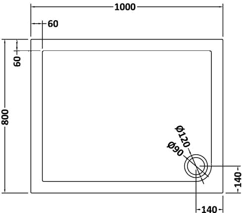 Low profile shower tray. Size 1000x800x40mm.