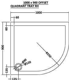 Acrylic capped low profile offset quadrant shower tray. Size 1000 x 900 x 40 mm. Right handed.