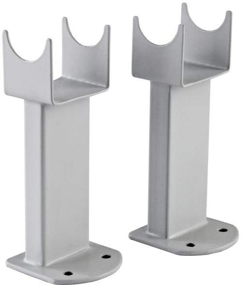 Pair of large floor mounting feet in silver.