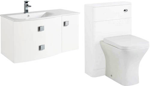 Hudson Reed Sarenna 1000mm wall mounted left handed vanity unit in white finish with 500mm floor standing WC unit.