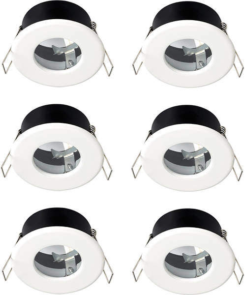 6 x Round designer shower spot light fittings in white with cool white LED lamps (240v).