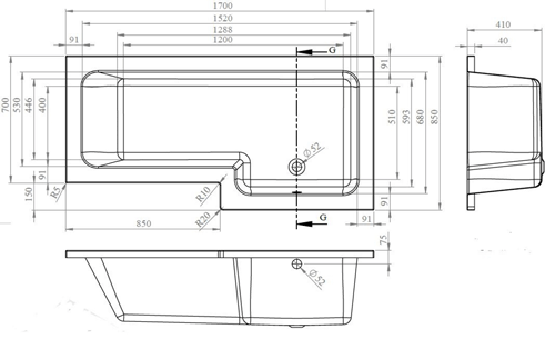 - Bath waste position: end.