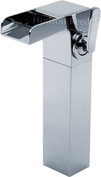 Waterfall high rise basin mixer tap in chrome.