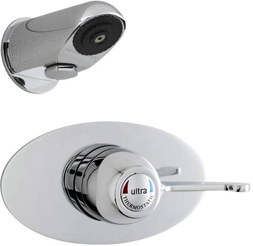 TMV3 concealed sequential thermostatic shower valve in chrome with lever handle and anti-vandal shower head.