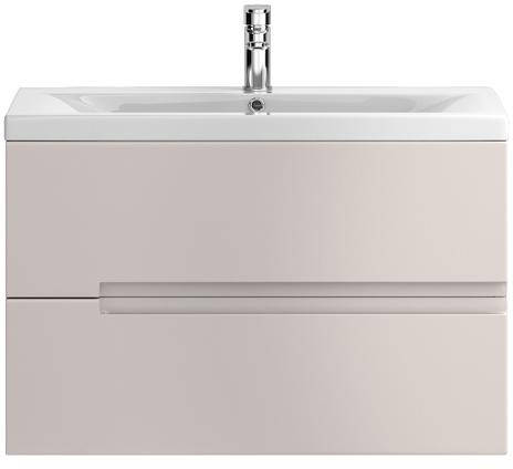 Hudson Reed Urban wall mounted 800mm vanity unit in gloss cashmere finish with 600mm WC unit and ceramic basin (type 1).