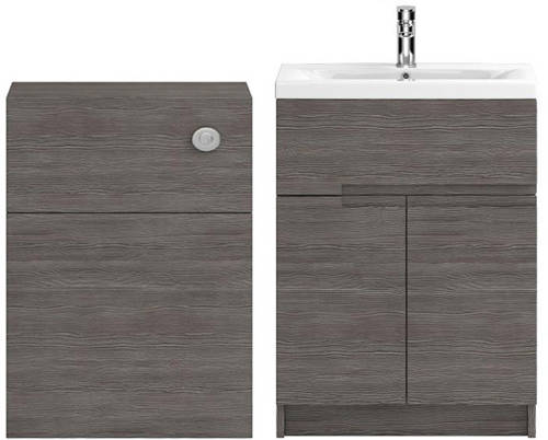 Hudson Reed Urban floor standing 600mm vanity unit in grey avola woodgrain finish with 600mm WC unit and ceramic basin (type 1).