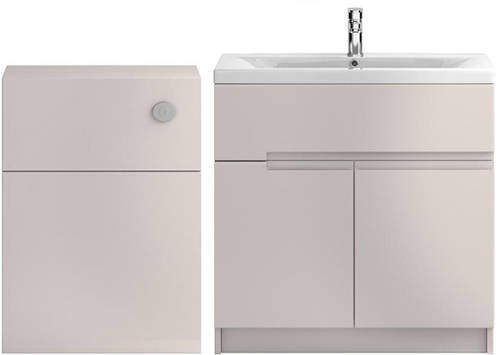 Hudson Reed Urban floor standing 800mm vanity unit in gloss cashmere finish with 600mm WC unit and ceramic basin (type 1).