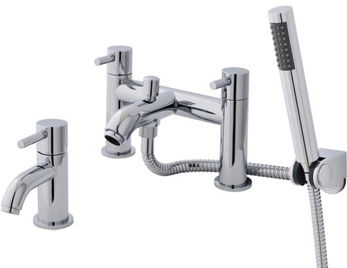 Verity basin and bath shower mixer tap in chrome with shower kit.