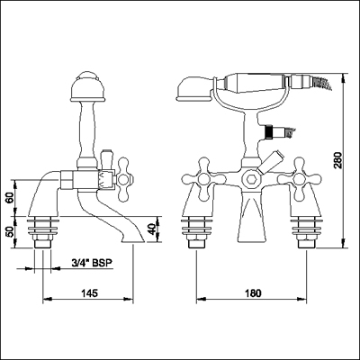 Bath Shower Mixer with Small Handset and Shower Kit in Chrome.