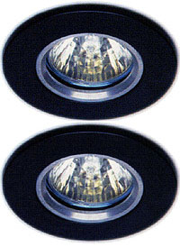Set of 2 low voltage black halogen downlighter with lamps and transformers.