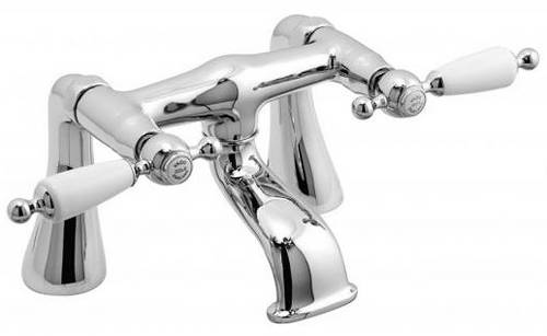 Kensington traditional wall mounted 3 hole basin mixer and bath filler taps pack in chrome and white.