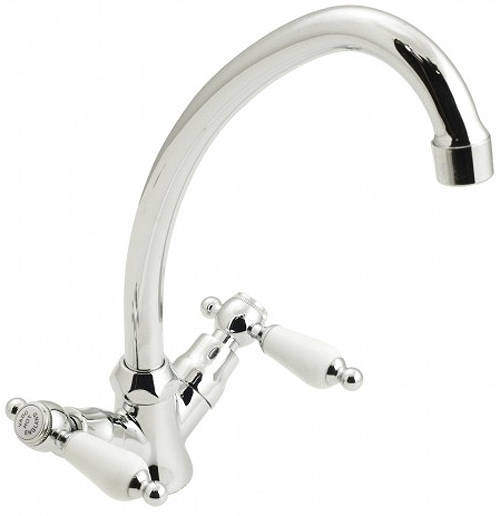 Kensington traditional kitchen mixer tap in chrome and white with swivel spout.