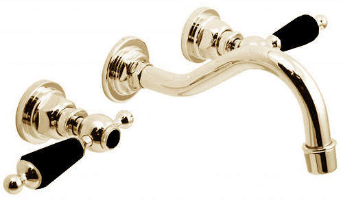 Kensington traditional wall mounted three hole basin mixer tap in antique gold and black.