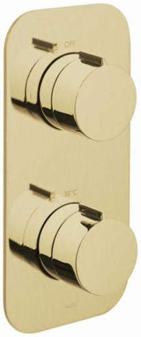 Altitude Individual concealed thermostatic shower valve in brushed gold with two outlets.