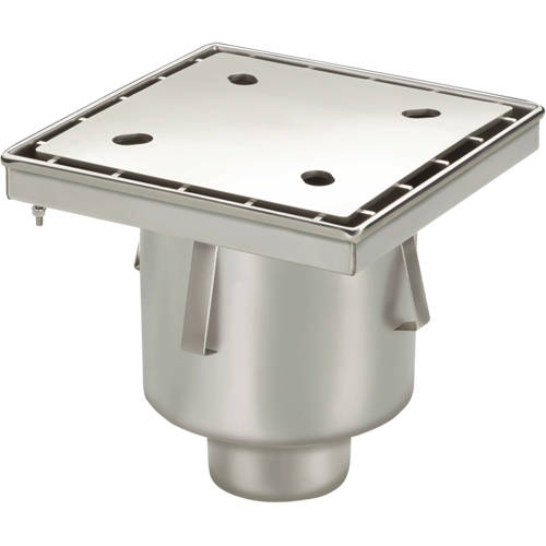 Van Den Berg industrial drain in stainless steel with 110mm vertical outlet.