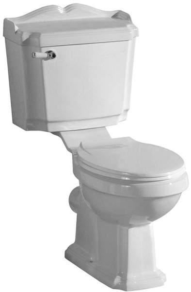 Classical toilet and cistern with fittings and seat. Size 480W x 760D x 880H mm.