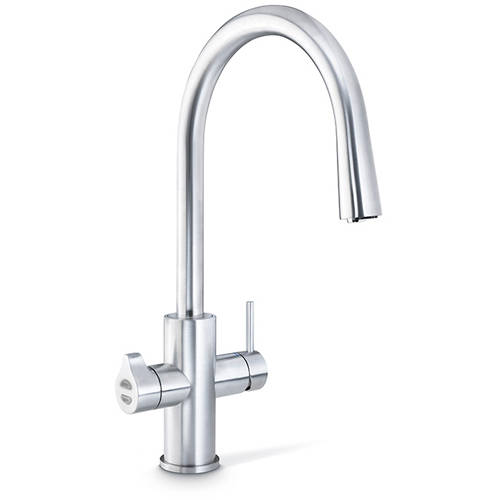Zip Celsius Arc All-In-One kitchen tap in brushed chrome finish with filtered boiling hot and chilled water. Plus standard hot and cold water (4 x water types).